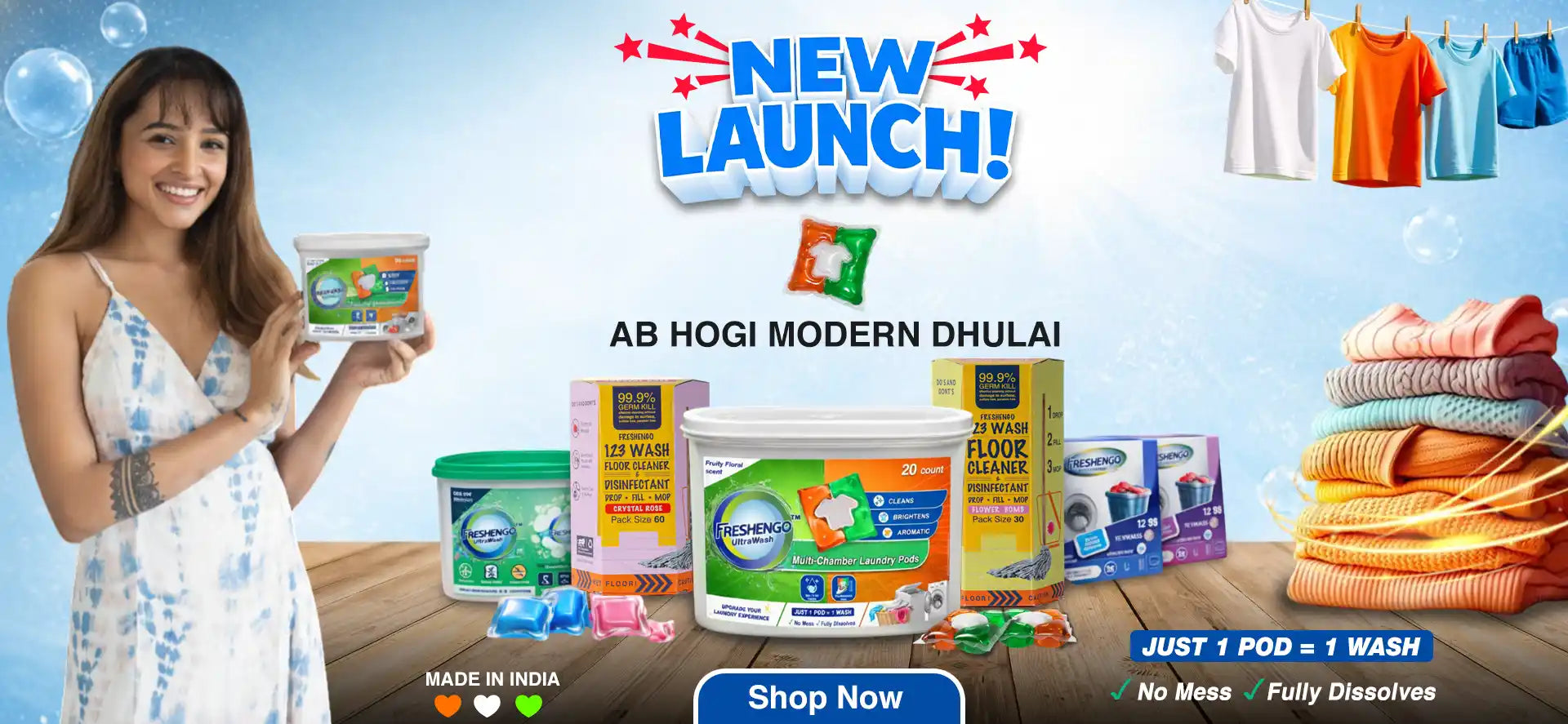 Freshengo Dhulai Laundry Detergent Pods – ₹12 Per Load | 3-in-1 Dissolvable Pods for Stain Removal, Fabric Care & Long-Lasting Fragrance