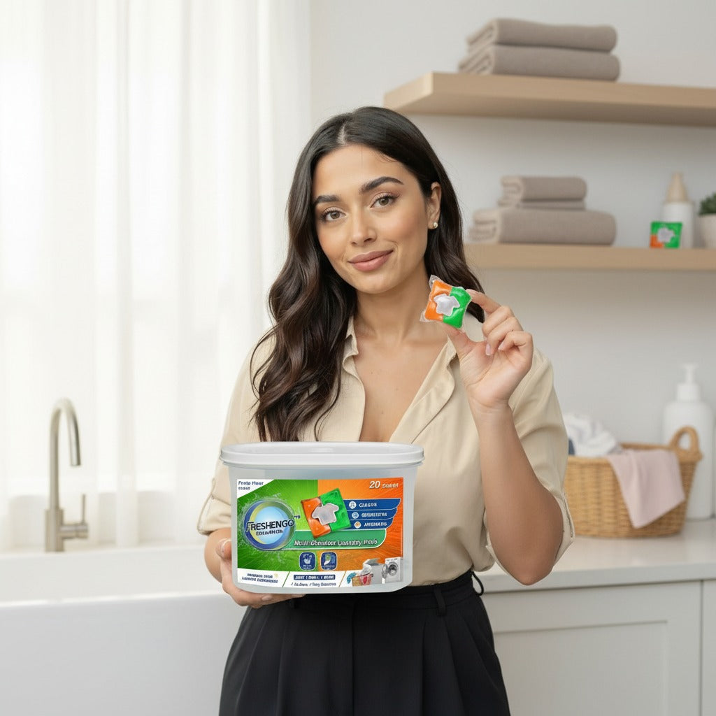 Affordable, powerful, and eco-friendly! Experience premium laundry care with Freshengo UltraWash Laundry Detergent Pods, offering 3-in-1 cleaning benefits – deep stain removal, fabric care, and long-lasting freshness.